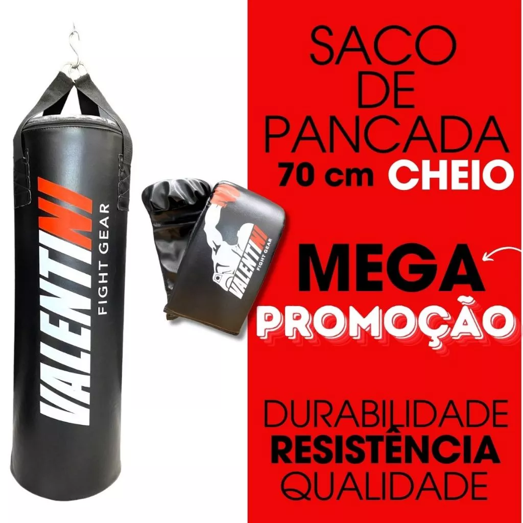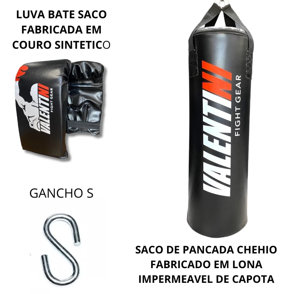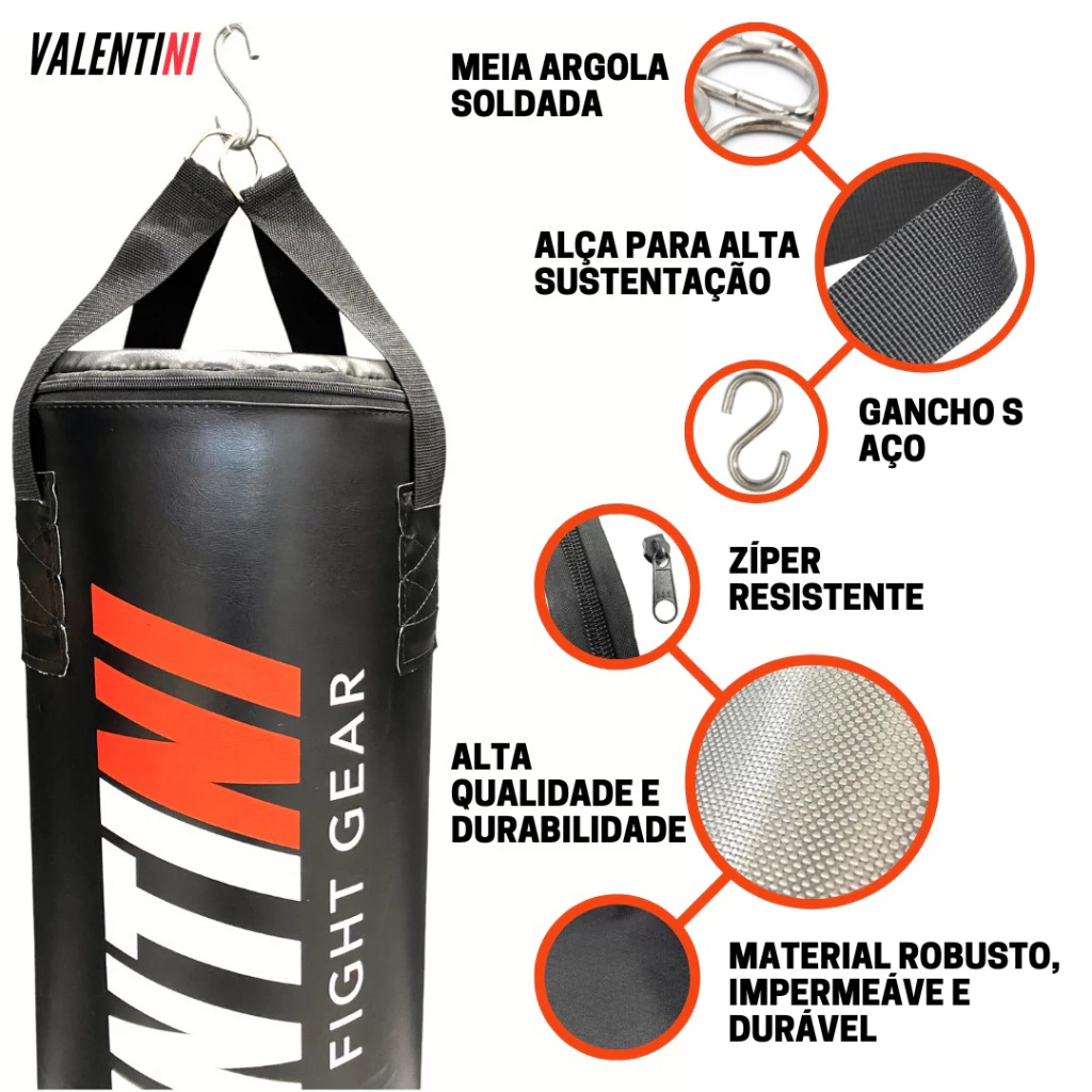 Saco de Pancada VALENTINI 70 cm CHEIO – Treino Boxe Muay Thai + 1 PAR DE LUVA BATE SACO